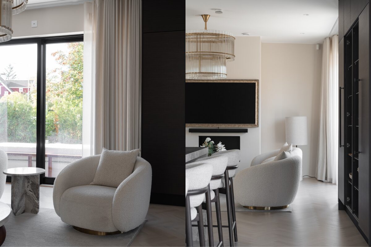 Invändigt har Willa Nordic hjälpt oss att skapa ett hem som är stilrent och minimalistiskt, men samtidigt varmt och personligt. Varje vinkel och yta är noggrant genomtänkt – från den svävande trappan och de dolda förvaringslösningarna till ljusflödet som förändras under dagen. Designen är konsekvent genom hela huset, där varje rum möter nästa i en naturlig rytm av ljus, struktur och material.